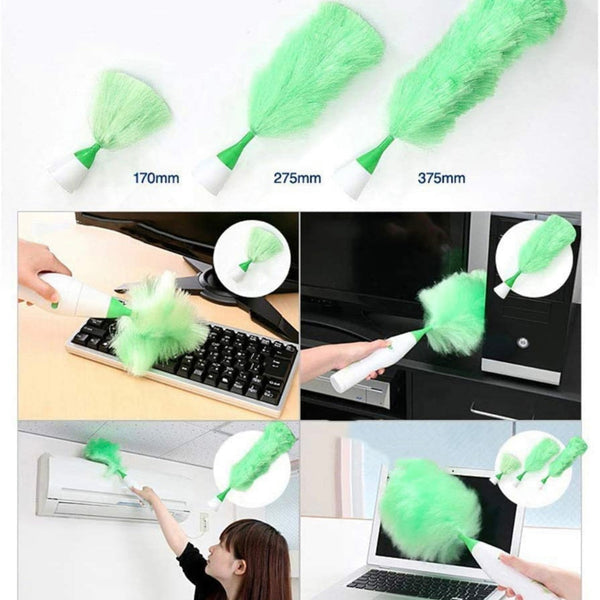 Limpia cualquier rincón del hogar de forma rápida y cómoda con este plumero rotatorio 3 en 1, ideal para eliminar el polvo sin esfuerzo. Incluye diferentes cabezales y extensor, perfectos para llegar a zonas altas y de difícil acceso.